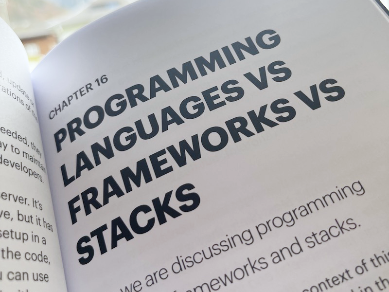 Software development in the context of this book means building an application that is used in the web browser. Or, in some cases, on your phone as an installed “app”. Read more about Programming languages vs Frameworks vs Stacks