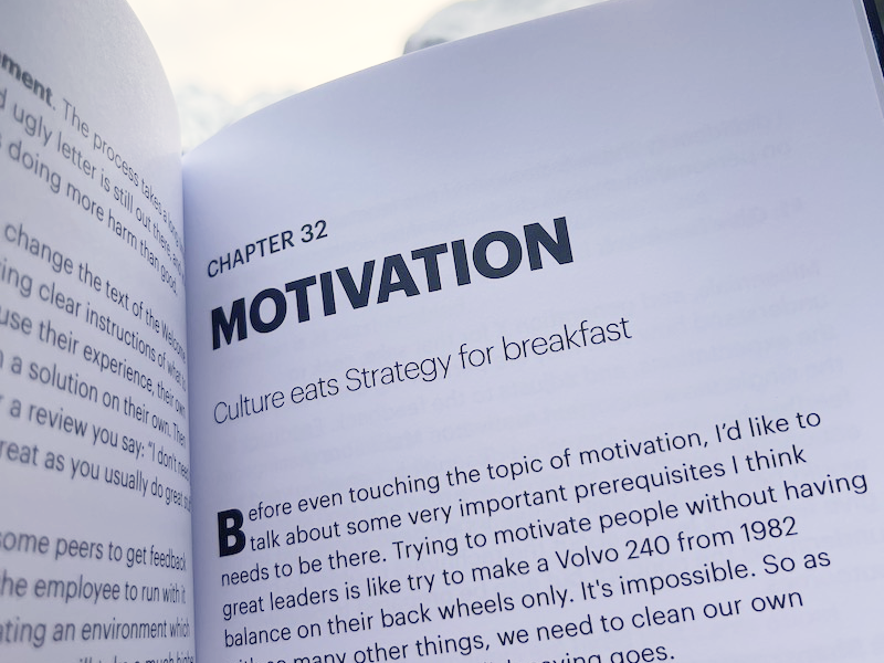 Before even touching the topic of motivation, I’d like to talk about some very important prerequisites I think needs to be there. Trying to motivate people without having great leaders is like try to make a Volvo 240 from 1982 balance on their back wheels only. It's impossible.